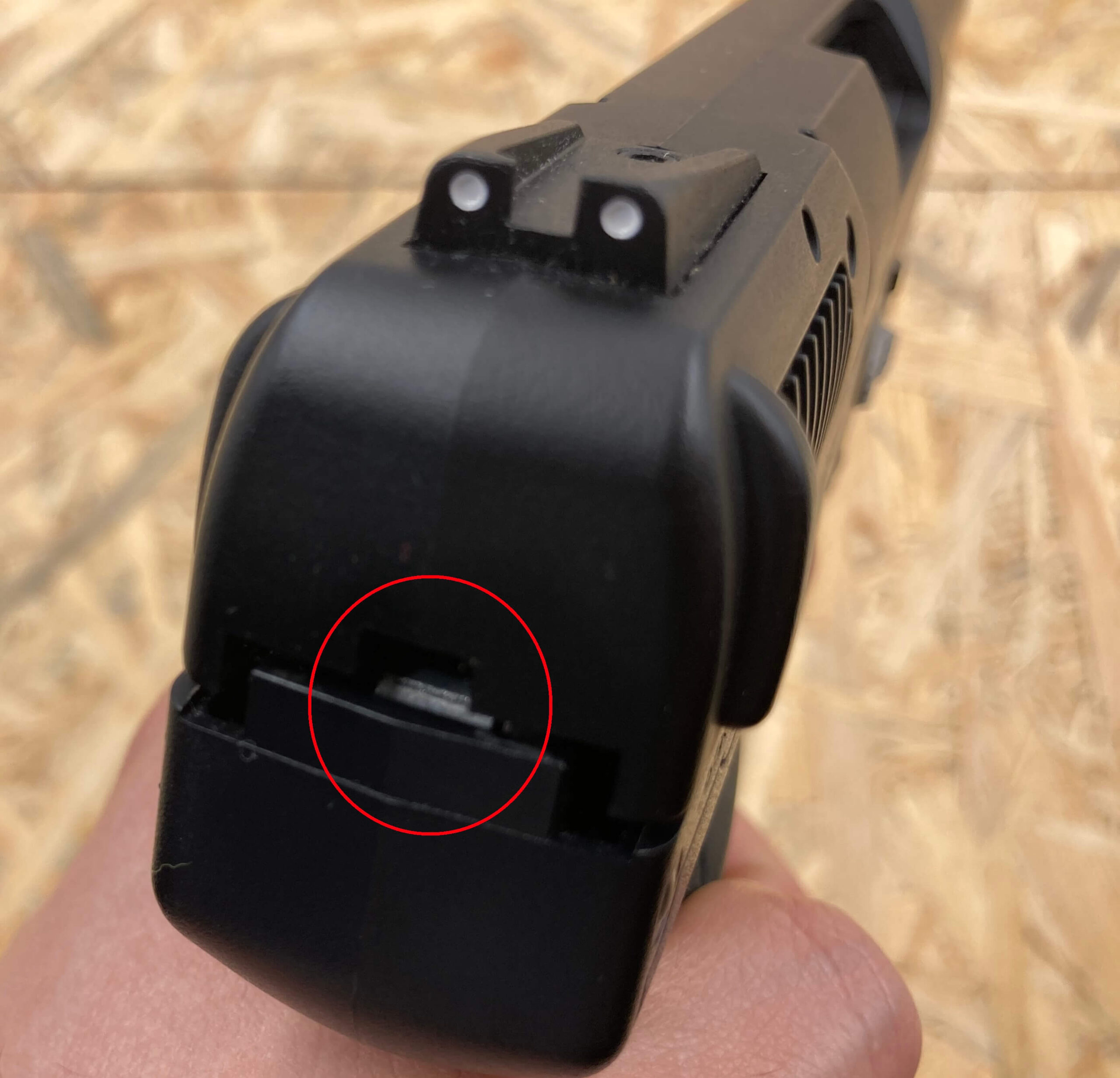 目立つわけではなのですが、やはりポリマーフレームということもあってこういうところも実銃同様なのでしょうね。