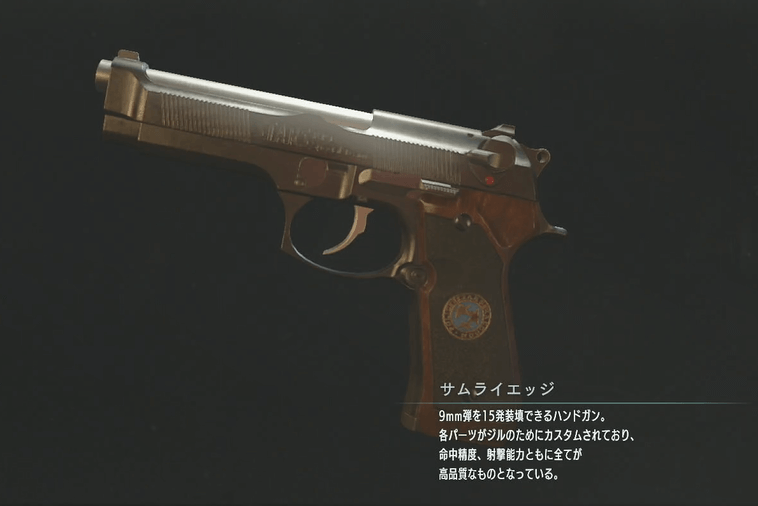 サムライエッジはバイオハザードシリーズオリジナルのカスタム拳銃です。