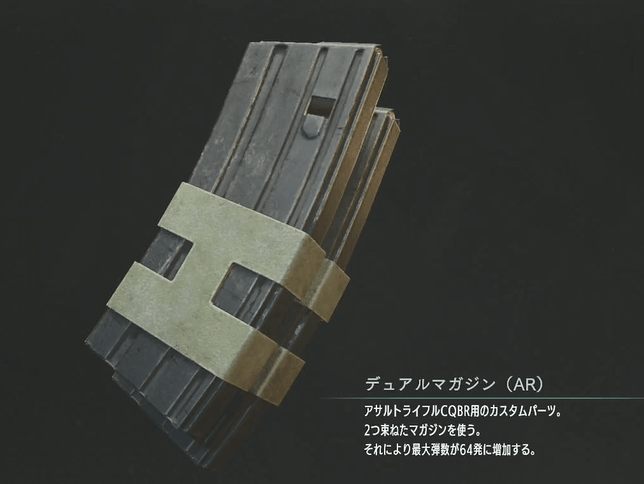 装備したら本来32発だったものが64発の装弾数にする拡張マガジンのような効果になっていますね。