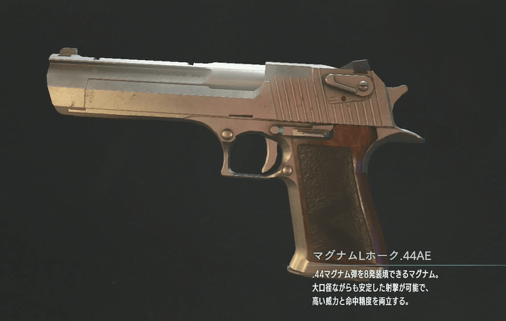 マグナム LホークはIMI・デザートイーグルをベースにロバート・ケンドがオリジナルカスタムされたバイオハザードオリジナルモデル(ライトニングホーク)です。