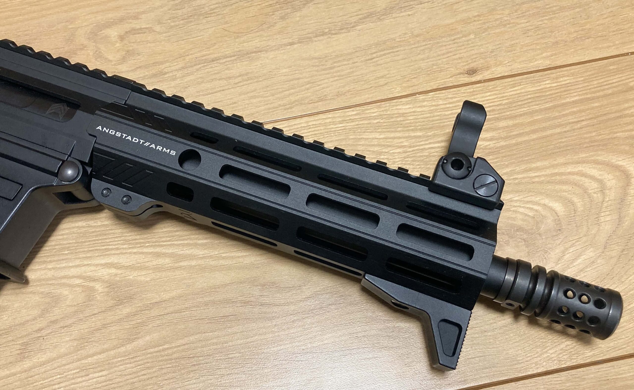 ハンドガードは後方にANGSTADT ARMの刻印がプリントされたM-LOK規格の7.5インチハンドガードが装備されています。