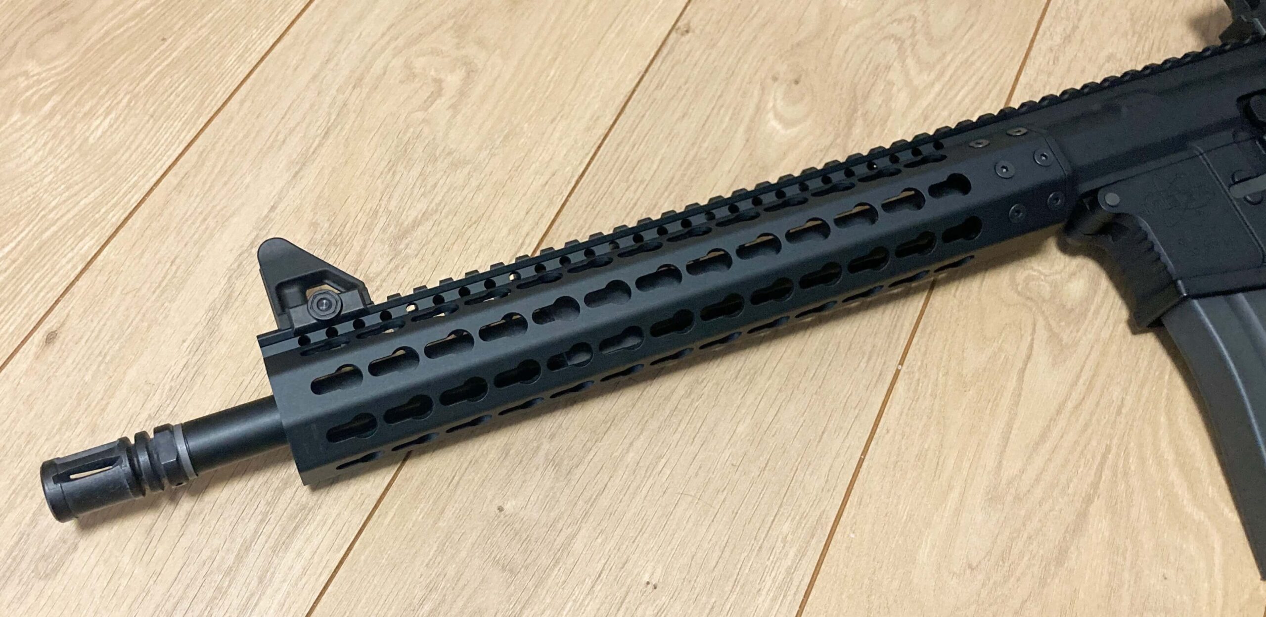 キーモッドレールのMKM専用ハンドガードとMKM専用のビレットアッパーレシーバーを装備したMKM AR15を今回は紹介します。