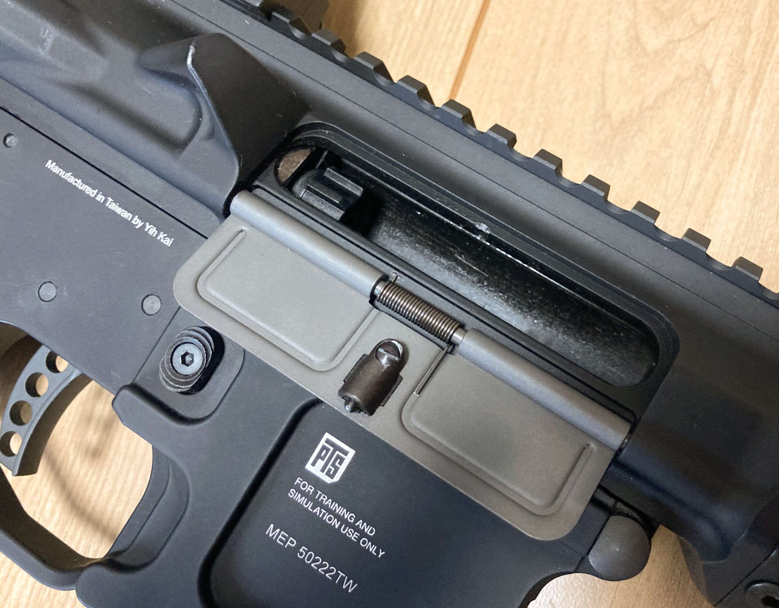 テイクダウンは通常のM4と同じくセレクター後方にあるテイクダウンピンを押して外します。