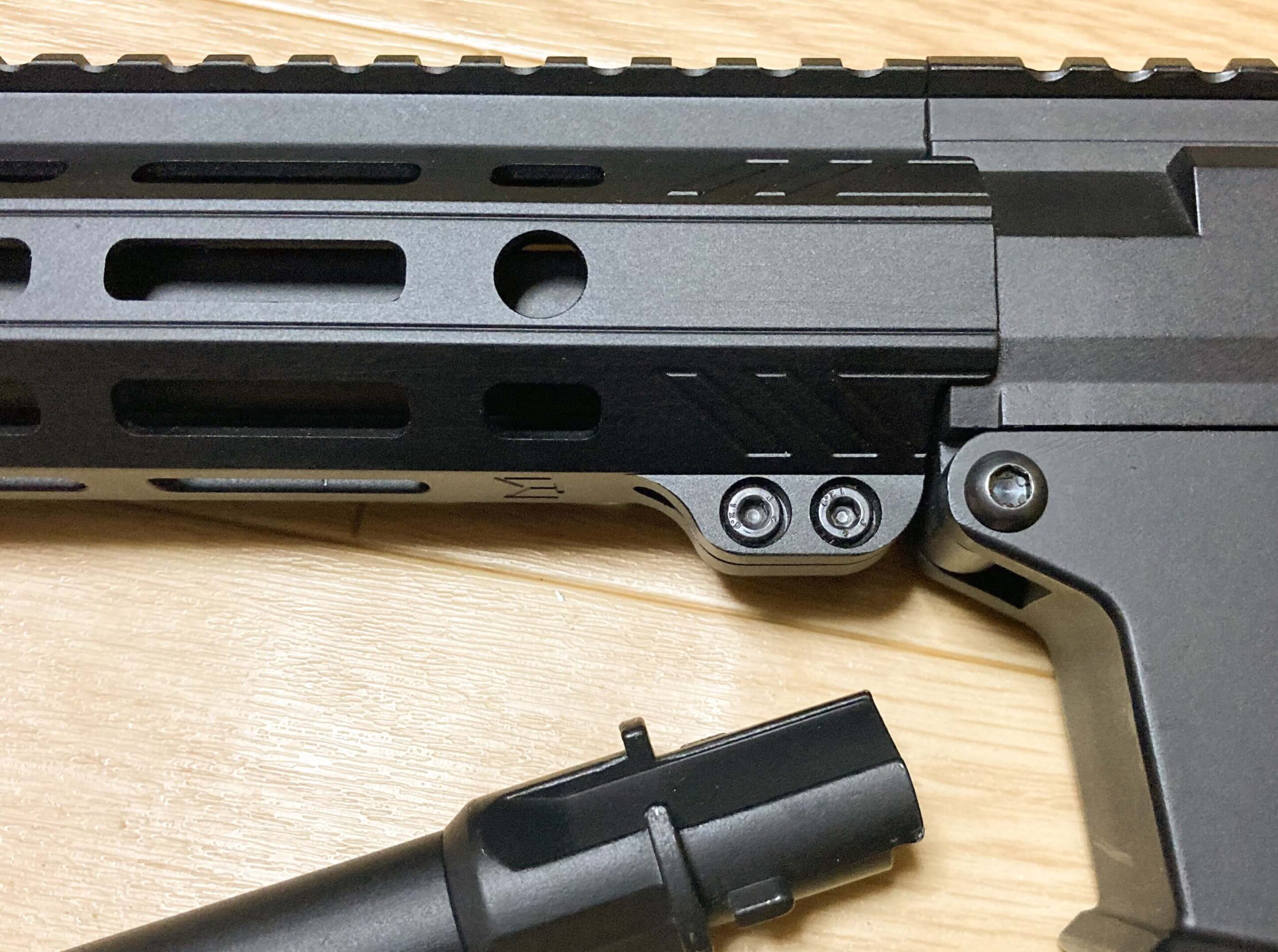まずハンドガード下の2本のバレル固定用ネジを緩めてハンドガードを取り外します。