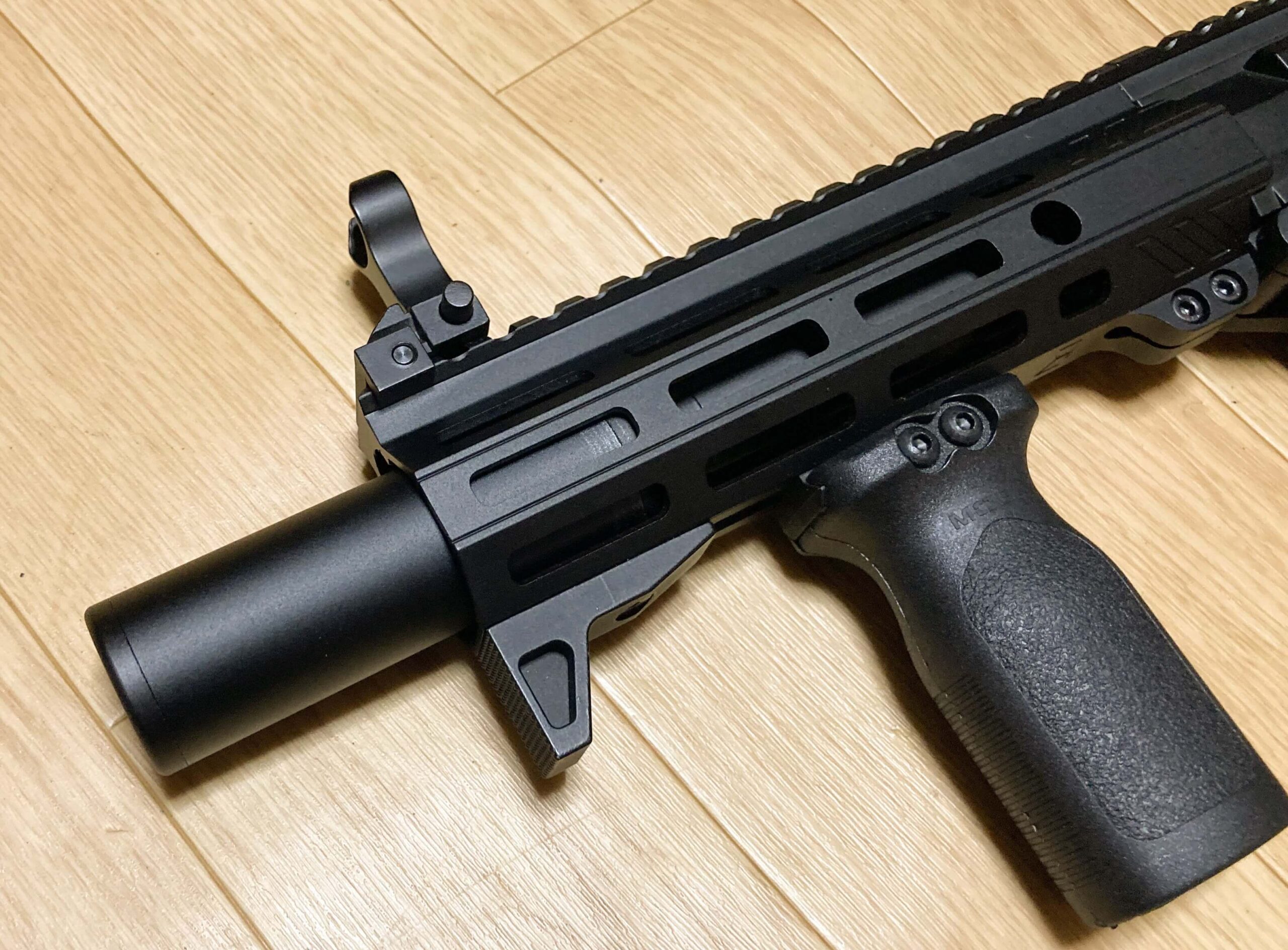 後はハンドガード内部に仕込める直径のサプレッサーを取り付けるだけなのですが、まだサプレッサーが届いていなかったのでまずは、フォアグリップから取り付けます。